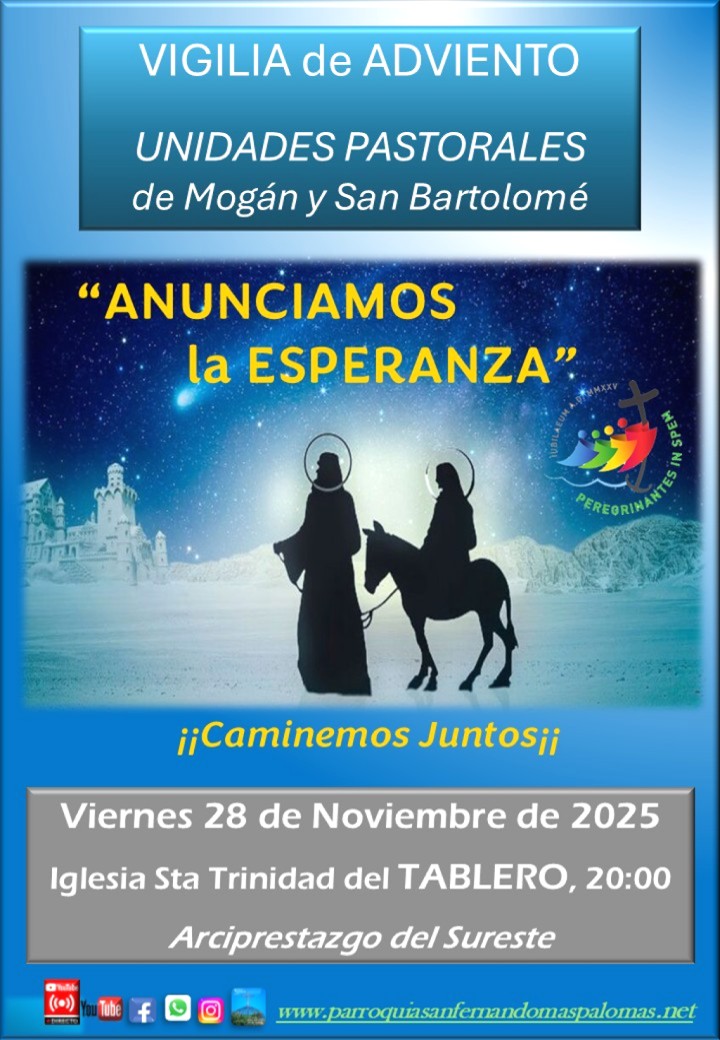 Vigilia de Adviento. Fue el templo de La Santísima Trinidad del Tablero y su iglesia, quien acogió a otras Iglesias, venidas de Mogán, Arguineguin, San Fernando, Fataga, Templo Ecuménico o San Agustín.