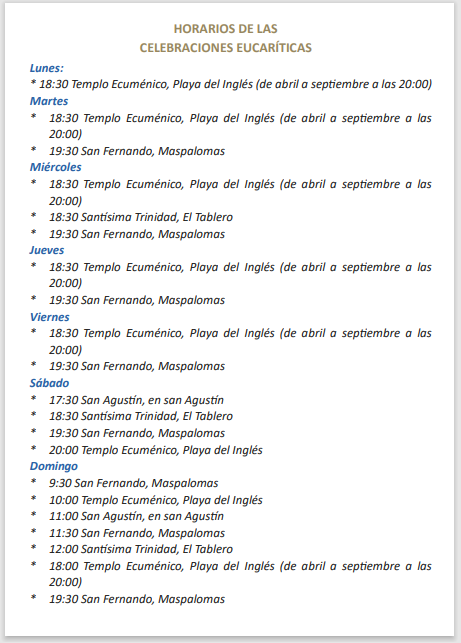HORARIOS DE MISA en las distintas PARROQUIAS de la UNDAD PASTORAL SBT SUR