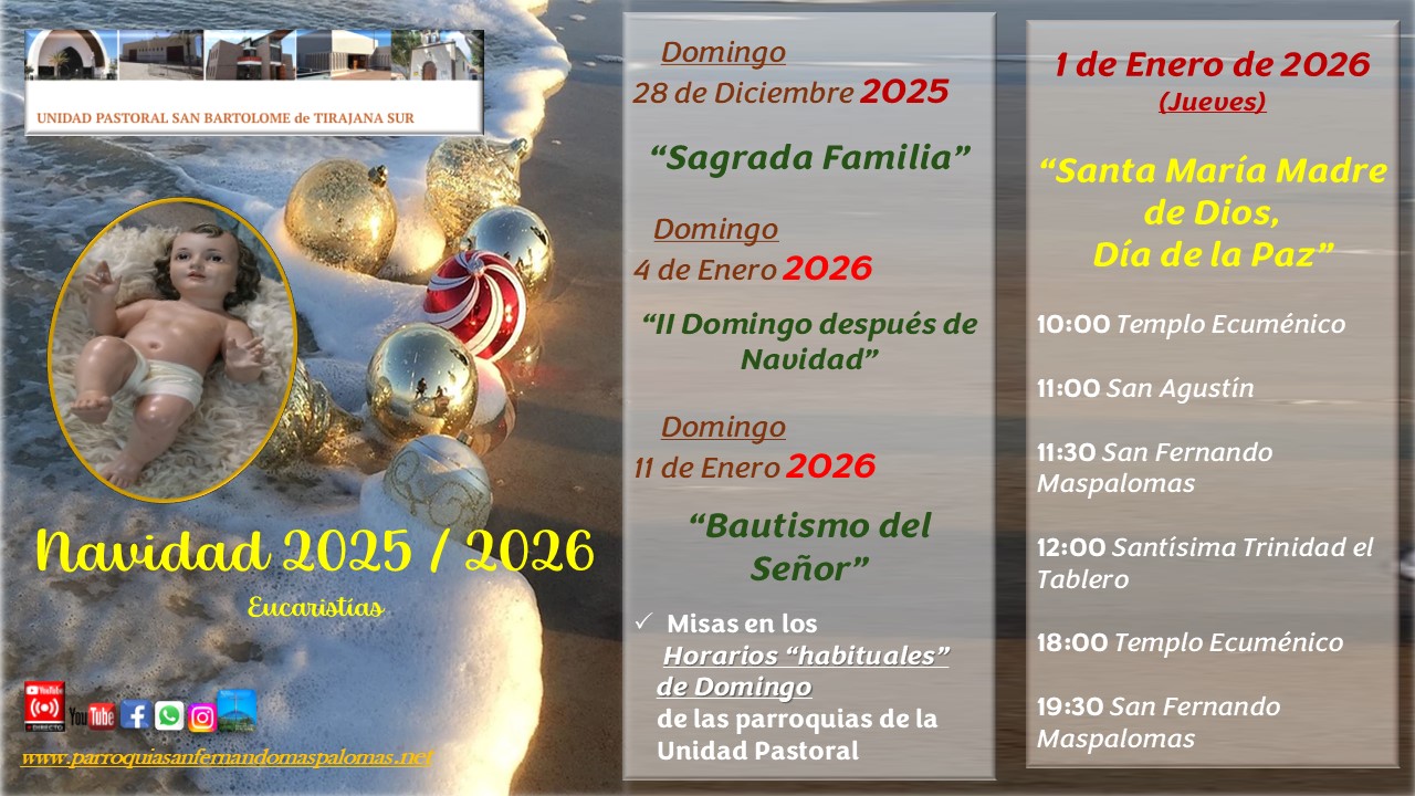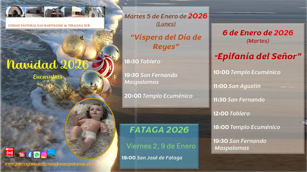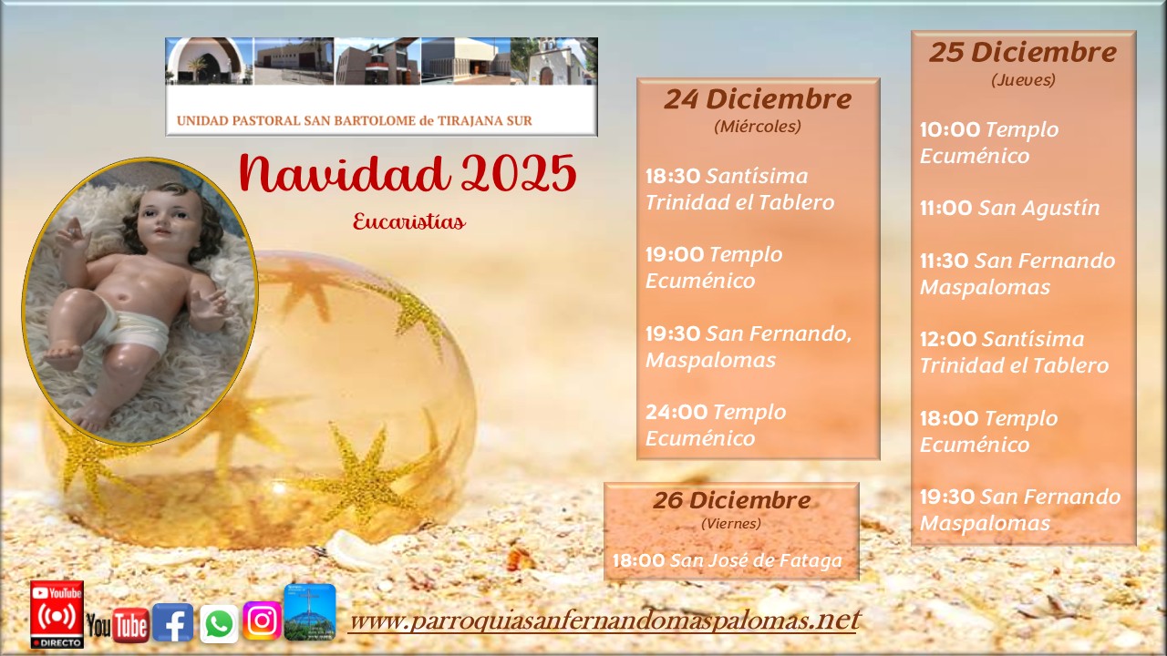 Desde la Unidad Pastoral de San Bartolomé de Tirajana Sur, les deseamos una Feliz y Santa Navidad. Que el Príncipe de la Paz, nuestro Salvador, Jesús nos colme de bondad y de misericordias.