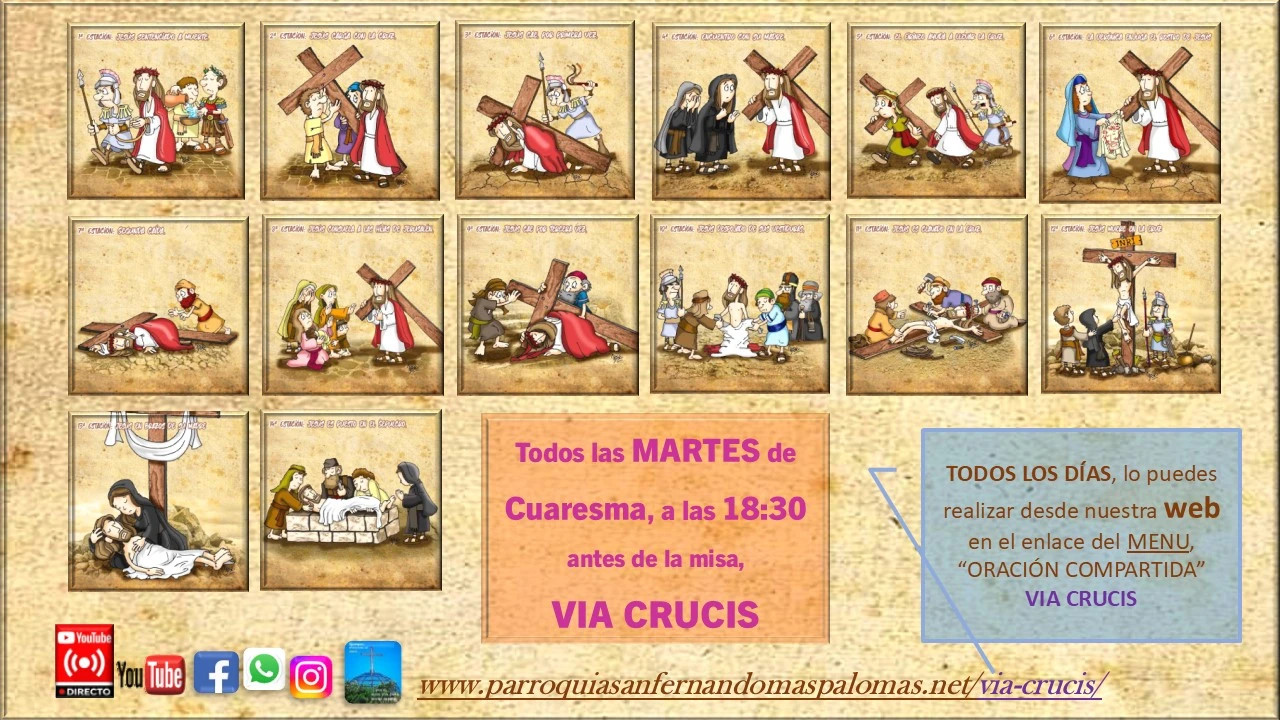 El Vía Crucis o Camino a la Cruz es una de las más antiguas devociones practicadas por los Católicos en todo el mundo. Consiste en acompañar a Jesús en su Pasión y Muerte, en sus horas finales, repasando 14 momentos (las 14 Estaciones del Vía Crucis) desde que fue condenado a muerte hasta su sepultura. Más recientemente a veces se suele agregar una nueva 15ª Estación: la Resurrección del Señor, en consideración a que si Cristo no resucitó, vana sería nuestra Fe (1 Cor 15, 14).