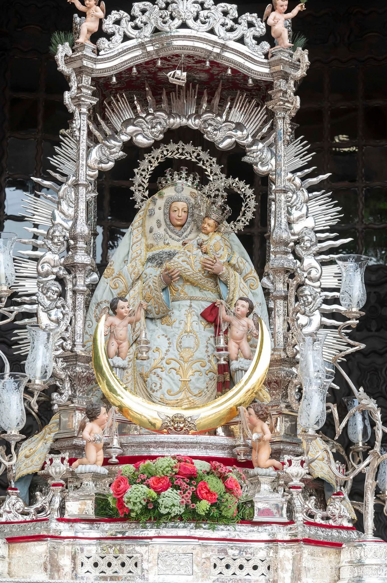 Tras la Eucaristía, la virgen desfiló entre 160.000 pétalos arropada por los devotos en el día grande. La lluvia no impidió que los asistentes esperaran la salida de la talla y la acompañaran en su recorrido.