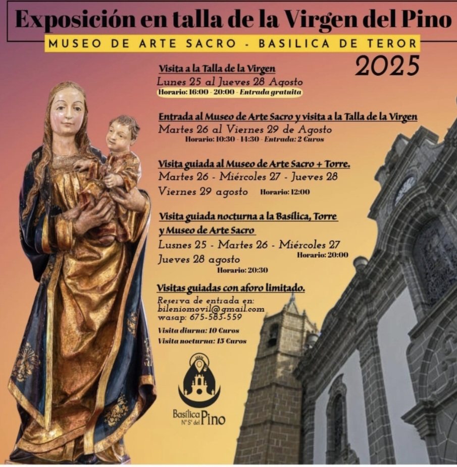 Compartimos programa de Visitas a la Talla de la Virgen del Pino, que estará expuesta a partir del 28 de Septiembre